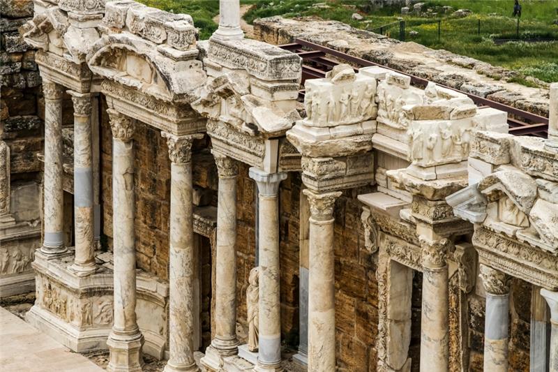 Antički grad Hierapolis prostire se iznad bajkovitih termalnih terasa. Poznat je po izuzetno dobro očuvanom teatru iz 2. stoljeća, te ostacima rimskih termi, Apolonovoga hrama i gradskih vrata.