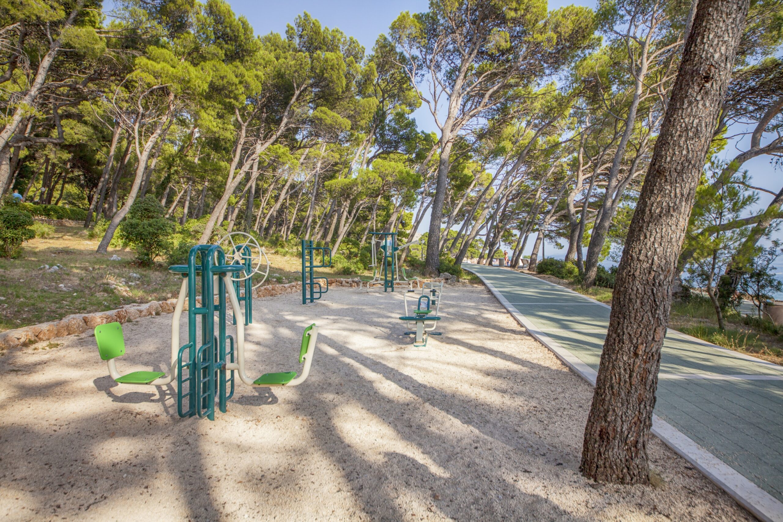 tenis tereni, organizirani izleti brodom, iznajmljivanje bicikala, ronjenje (škola), staze za šetnju i trčanje.