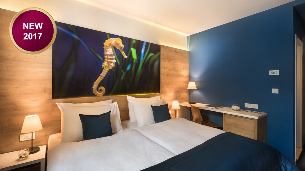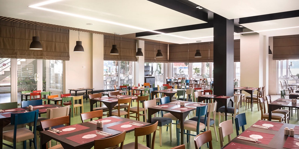renoviran hotel tijekom zime 2016./2017.; 4 dizala, 312 soba, Internet kutak (uz doplatu), parking uz doplatu, igraonica, suvenirnica, restoran, lobby bar, bar i restoran na plaži, dječji bazen, vanjski bazen, ležaljke i suncobrani uz bazen besplatno (ograničen broj).