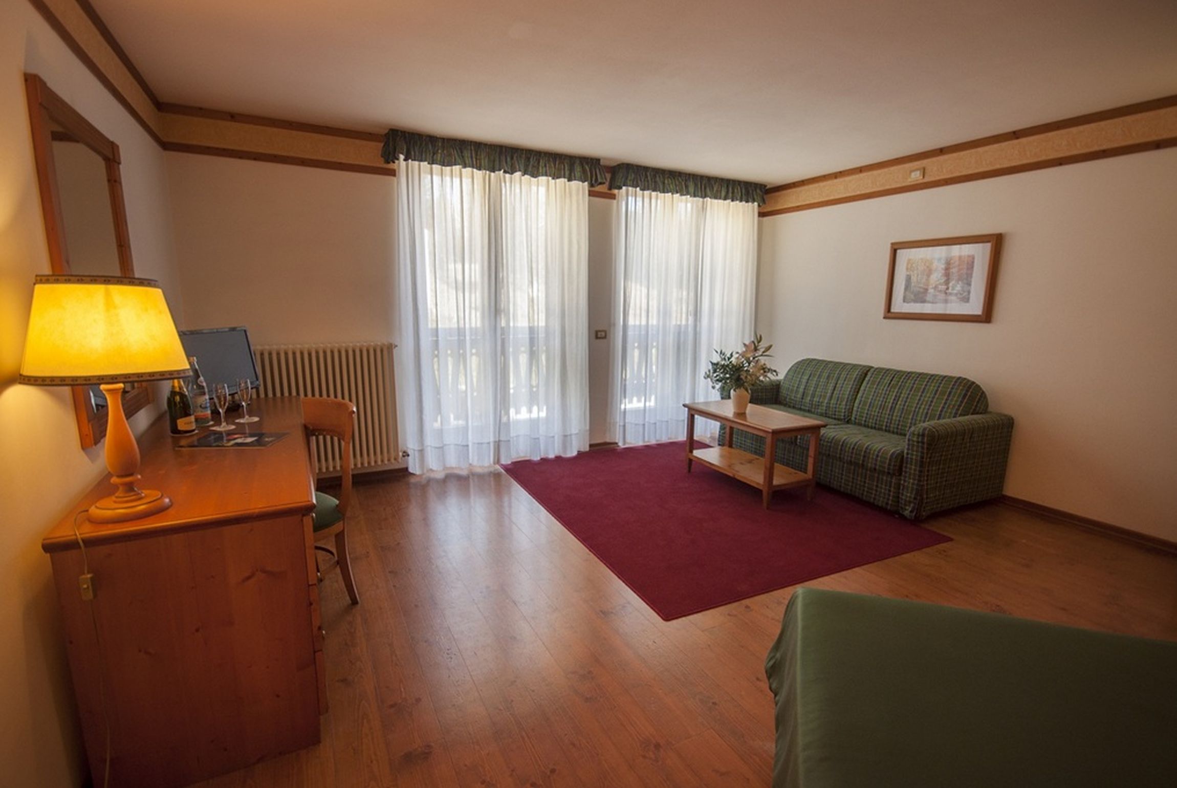 ukupno 87 elegantno uređenih soba, kupaonica sa sušilom za kosu, SAT TV, telefon, minibar, s pogledom na Dolomite