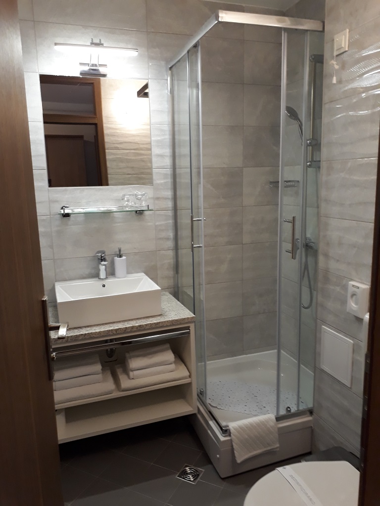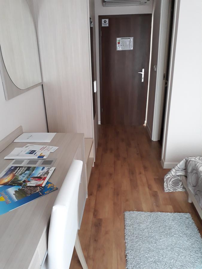STANDARD SOBA (19m2) – sobe s francuskim balkonom, DOUBLE za dvije osobe, tuš/WC, telefon, SAT TV (50 digitalnih programa), LED TV, Wi-Fi (besplatno), klima uređaj (besplatno), sušilo za kosu, hladnjak (besplatno), utičnice za 220V, detektor požara, dj. krevetić dostupan na zahtjev