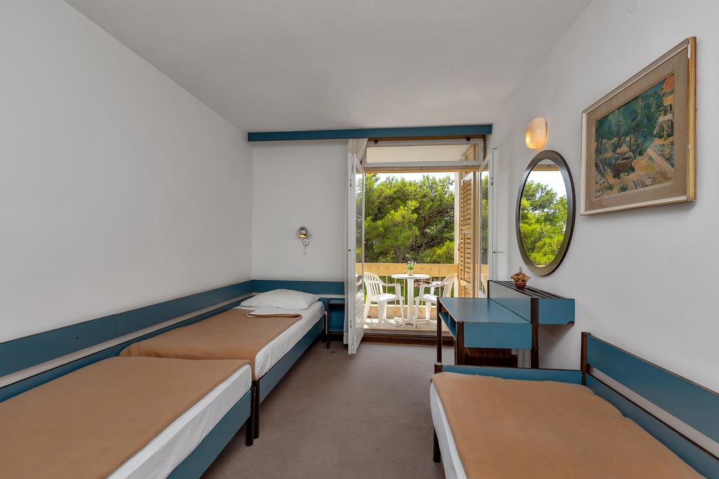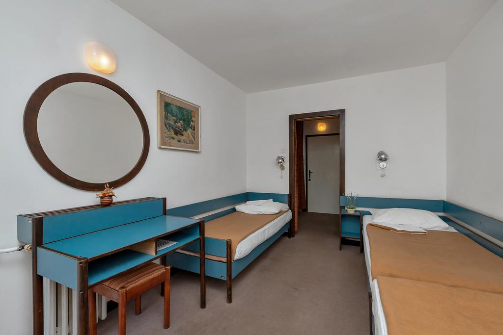 skromno opremljene, balkon (neke sobe u hotelu su okrenuti na morsku stranu, a neke na park stranu dok su u depadansama sve sobe okrenute na morsku stranu). Gosti iz depandansa imaju uslugu ishrane u hotelu Alem.