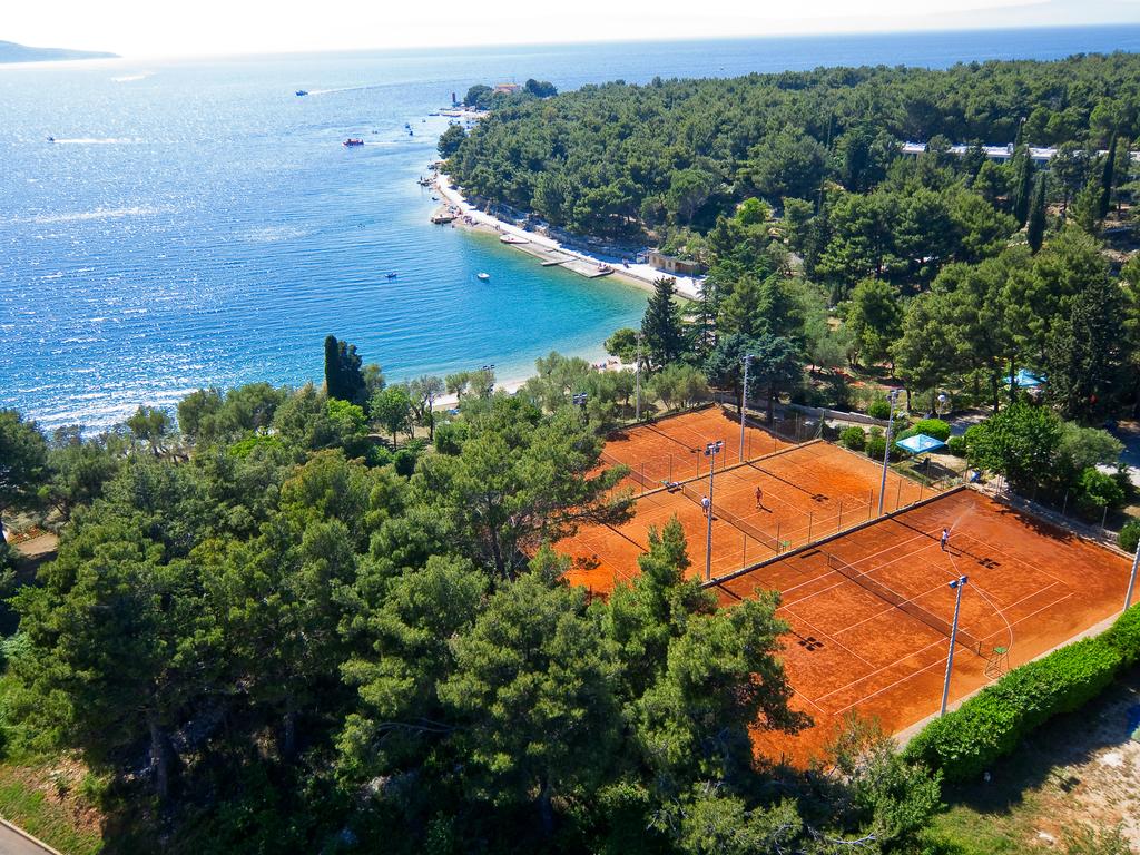 ispred hotela šljunčana i kamenita, postupno padajuća plaža pogodna za djecu. Nudistička plaža 700 m od hotela.