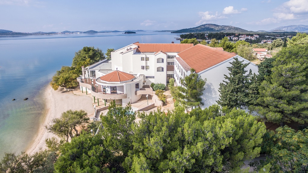 Pirovac hotel Miran – ako ste u potrazi za odmorom u tihoj oazi tik uz more hotel Miran ispunit će sva vaša očekivanja i više. Naime, Hotel Miran kategoriziran je s tri zvjezdice i nalazi se u mirnoj jadranskoj uvali, duž koje se pruža šljunčana plaža. Hotel se nalazi u Pirovcu, živopisnom dalmatinskom naselju, samo 5 km udaljenom od Parka Prirode „Vransko jezero“. Gajite li strast prema pecanju, posjet Vranskom jezeru ne smijete propustiti. Kao niti izlete u NP Kornati i NP Krka, najposjećenijim hrvatskim nacionalnim parkovima. Ukoliko odmor radije provodite na samo jednoj lokaciji, prepustite se mediteranskom zraku i predivnim pogledima s uvale Vrulje na Jadransko more i otočić Sustipanac.