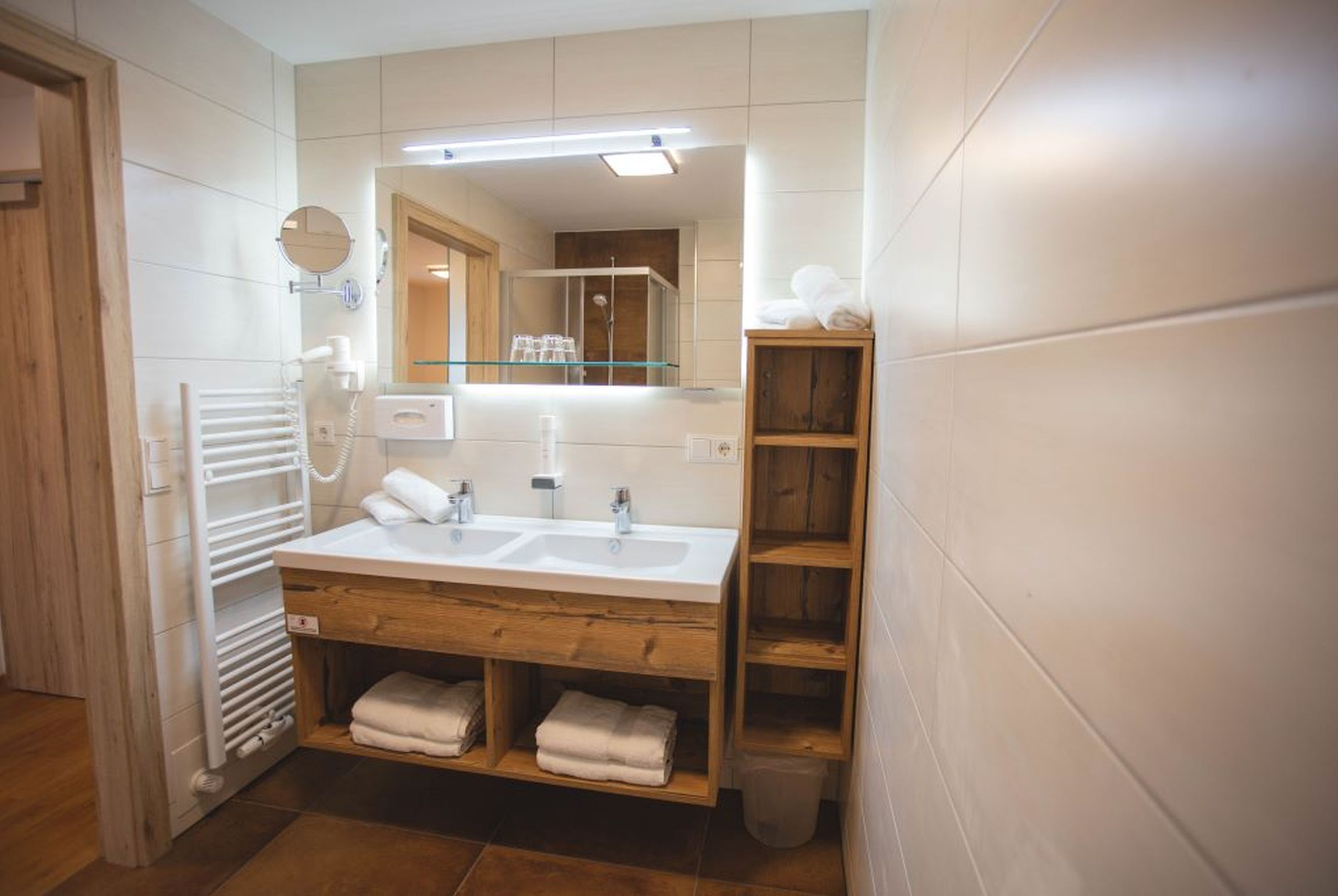 Alpin comfort family room 1/2-4: dupli ležaj + niša sa krevetima na kat, velika kupaonica sa duplim umivaonikom, odvojeni WC.