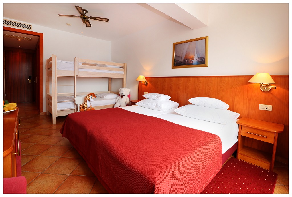 Premier club mini obiteljska soba****: francuski balkon i prostrane su (ukupno 25m2). Soba je opremljena krevetom na kat za djecu do 12 godina.