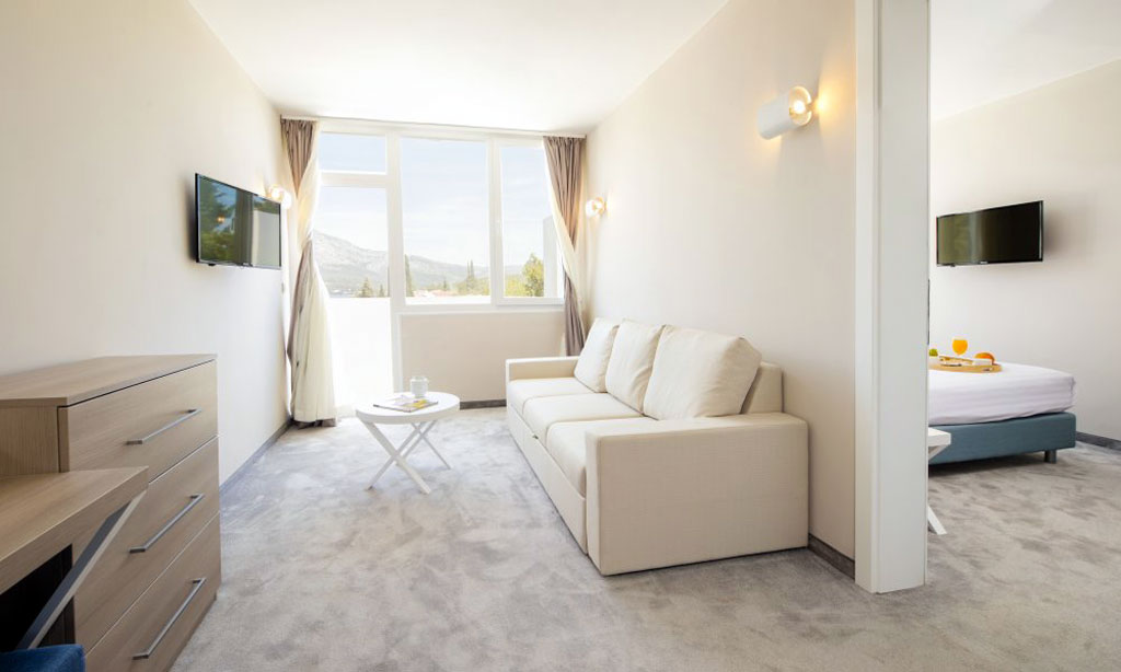 – 6 luksuznih junior suita s balkonom, 28 – 35 m2, kupaonice s kadom