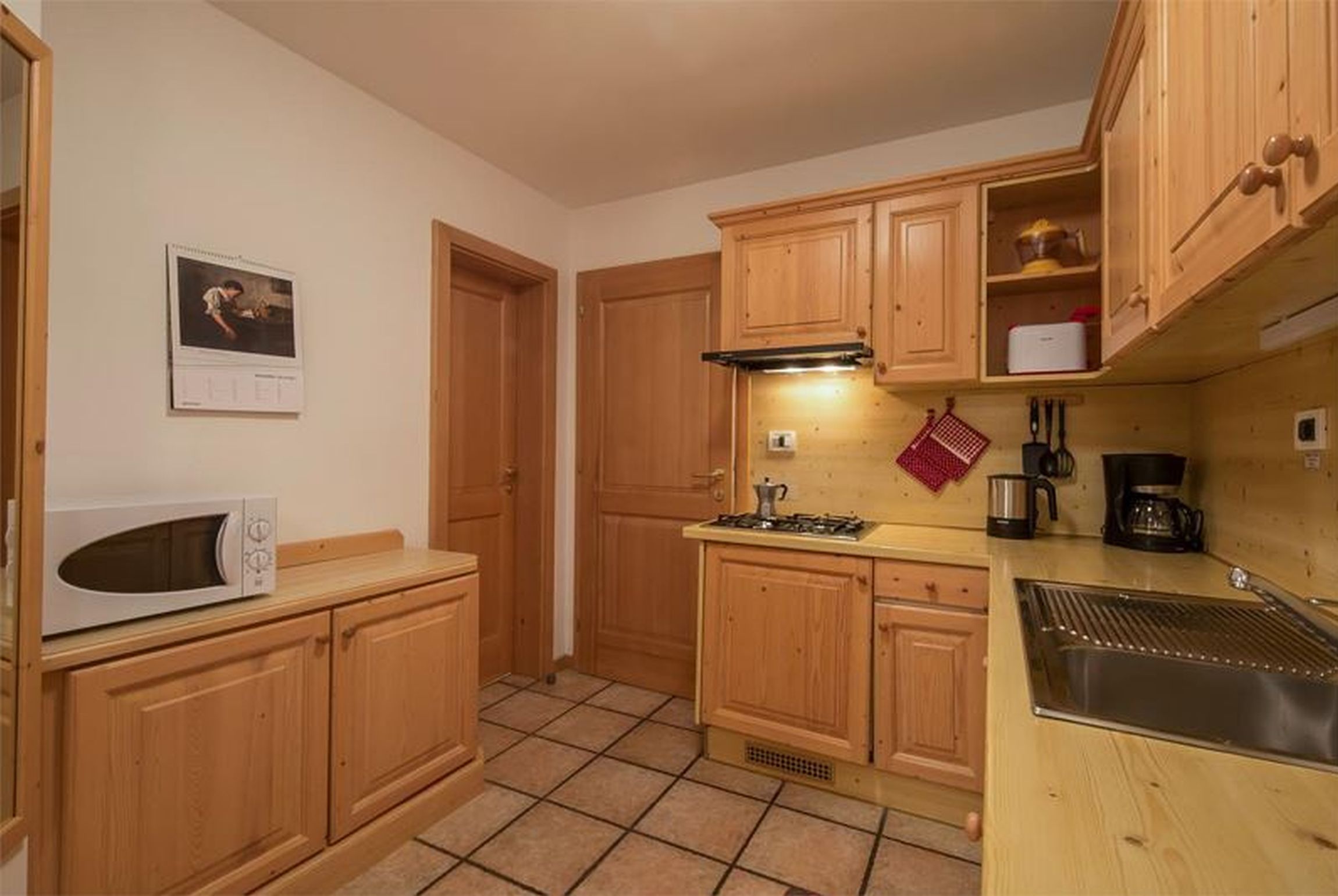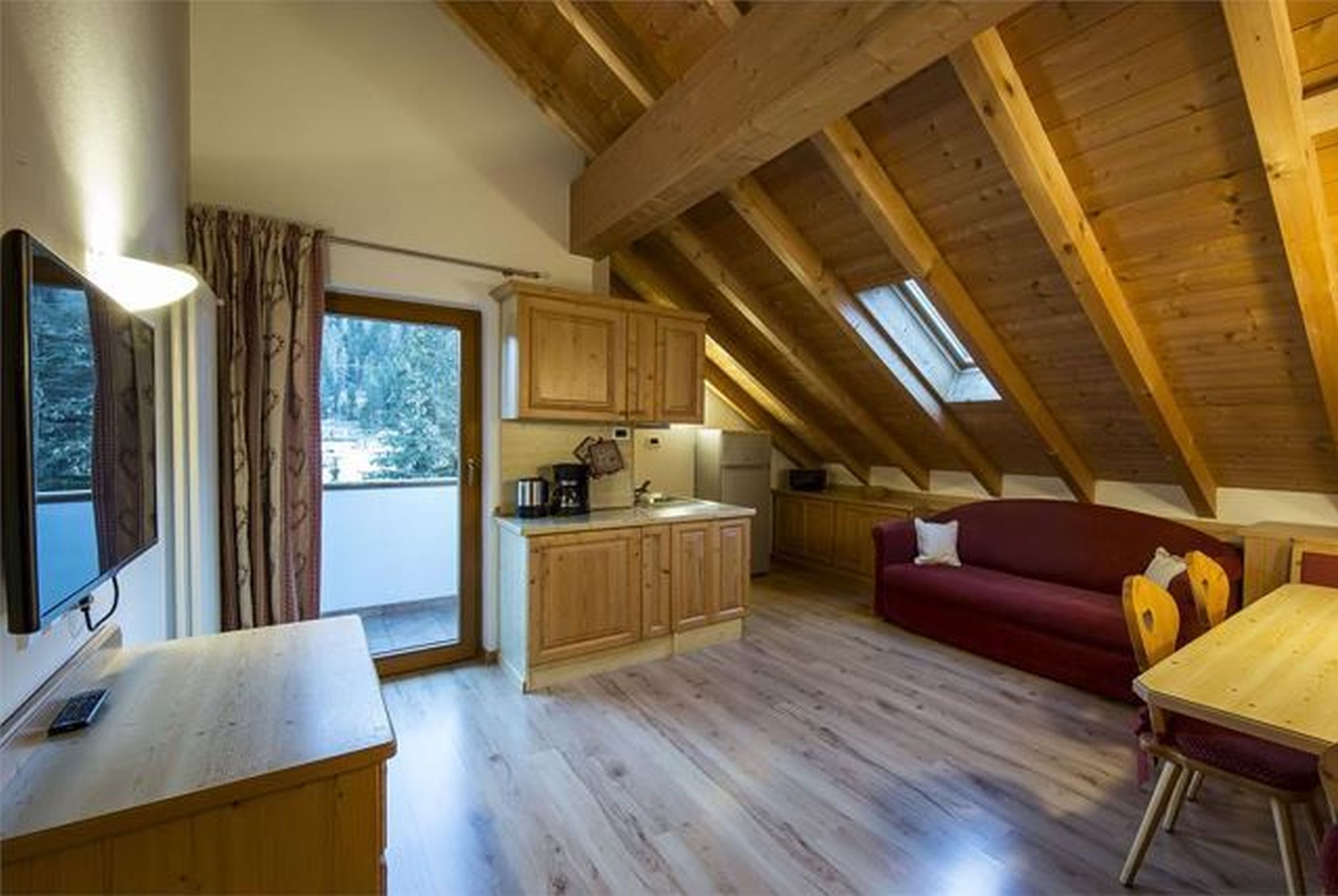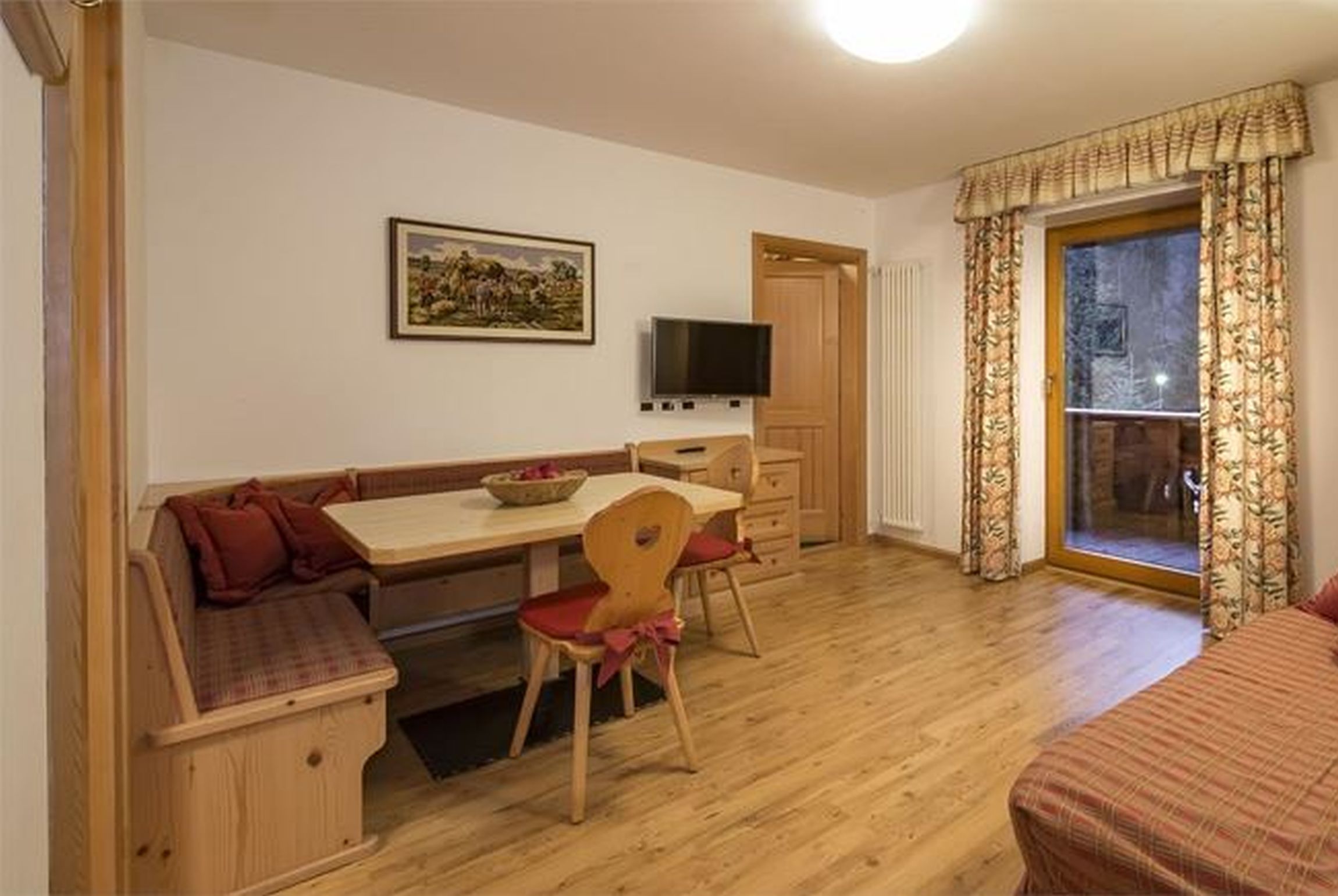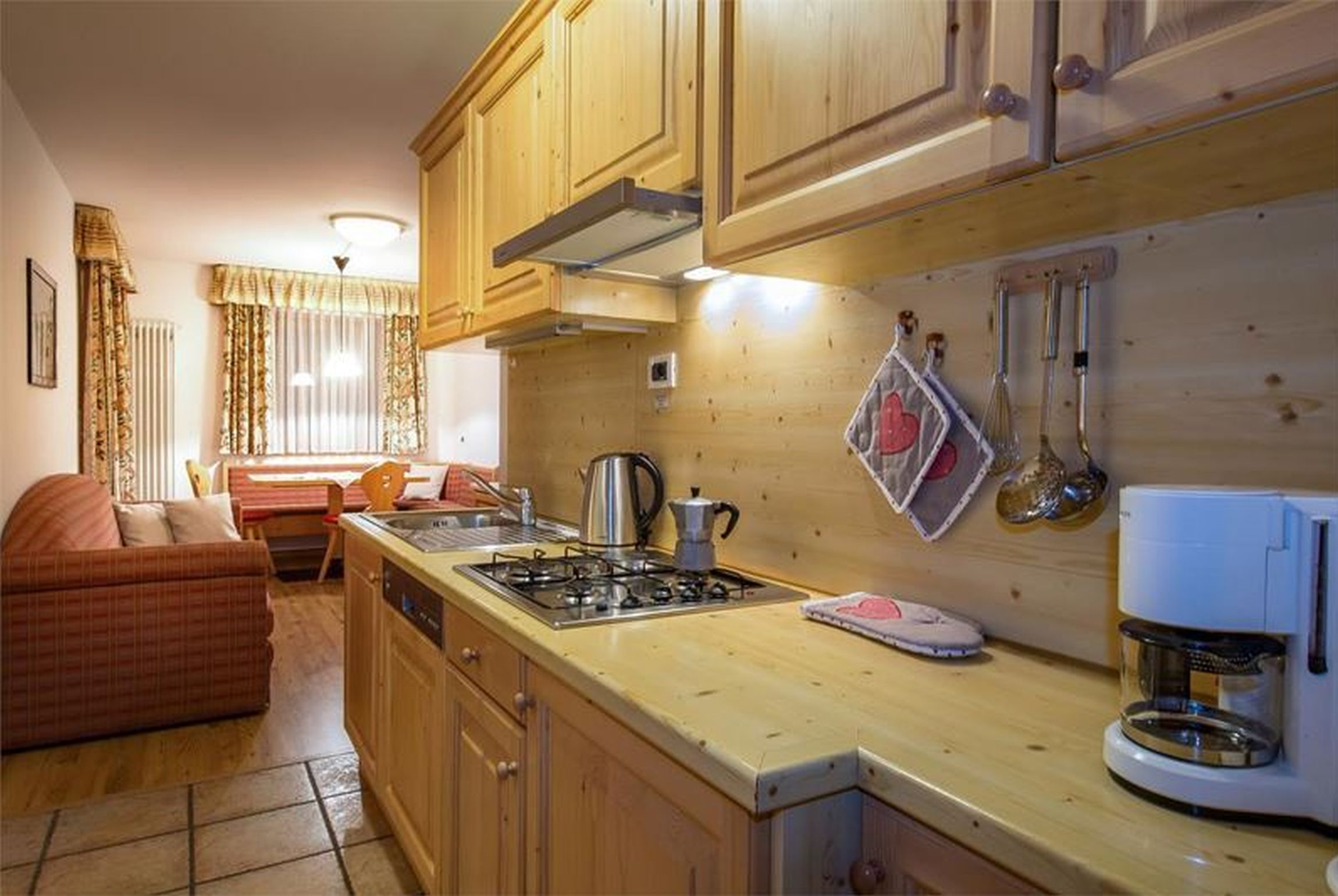 topli, udobni i prostrani apartmani, uređeni u tipičnom stilu južnog Tirola: sa drvenim namještajem i toplih boja. Kuhinja opremljena sa pločom za kuhanje, hladnjakom, perilicom posuđa, aparatom za kavu, posuđem. Dostupno na upit: električna pećnica, mikrovalna pećnica, kuhalo za vodu i toster. Svaki apartman ima balkon, sat TV, gratis WiFi i sušilo za kosu.