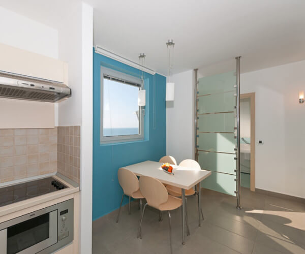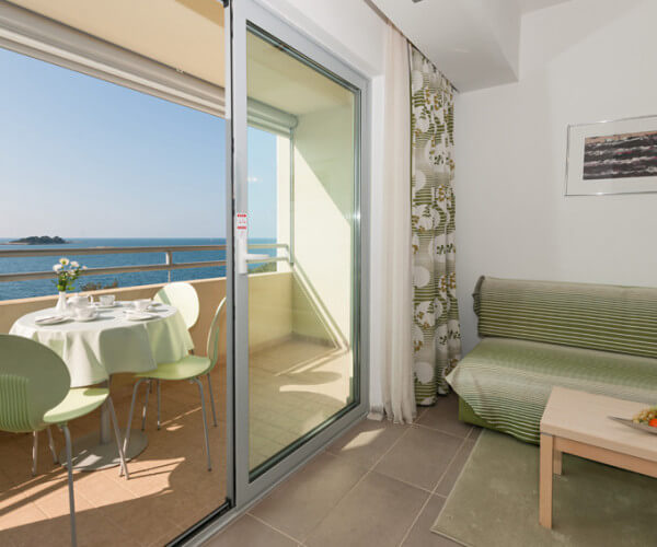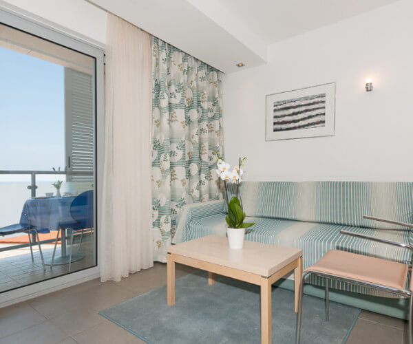 Savršen za promatranje zalazaka sunca s balkona ili kauča u dnevnom boravku. Površina 45 - 50 m2, maksimalno četiri osobe, spavaća soba sa dva povezana ili odvojena kreveta, dnevni boravak s kaučem za dvije osobe, kuhinja (mikrovalna pećnica, aparat za kavu, ploča za kuhanje, hladnjak), kupaonica s tušem ili kadom, sušilo za kosu, klima-uređaj, SAT TV, telefon, sef, balkon.