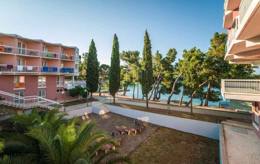 4 depandanse sa ukupno 151 soba (dio soba sa balkonom, dio soba bez balkona), unutarnji bazen sa morskom vodom (zatvoren u terminu 6.6.-12.9.2020.), restoran koji je smješten u neposrednoj blizini depandansi sa 400 sjedećih mjesta, plažni objekt sa terasom „Uvala“ koji je smješten nasuprot restorana. Parking i WiFi uz doplatu.