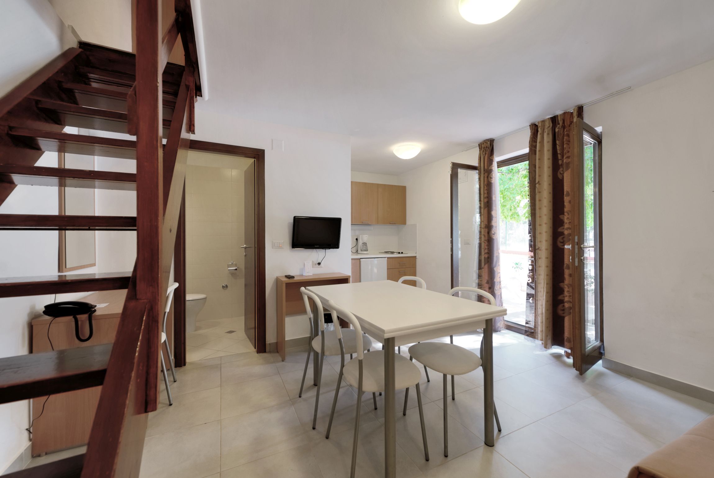 31 m2,, kupaonica s kadom, klima-uređaj, kuhinja (ploča za kuhanje, aparat za kavu, hladnjak), sušilo za kosu, terasa