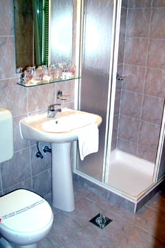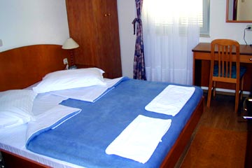 Sobe u bungalovima: dvokrevetne i trokrevetne sobe, cca 15 – 18 m2, TWC, TV, balkon ili terasa.